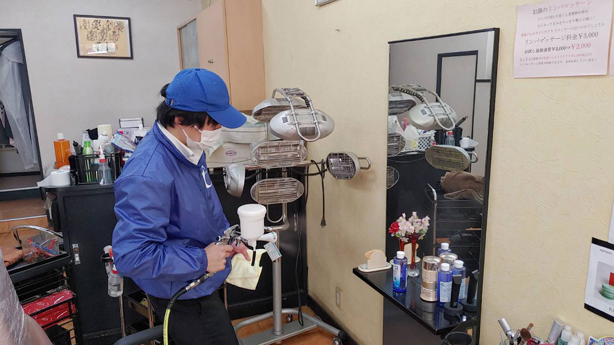 また、従来の工法では養生やプライマー処理など工程が多く、その分施工時間が長くコストも割高という状況でしたが、イオニアミストPRO は吹きつけるだけで施工が完了、短時間で施工ができ、また工程も少ないため、高性能かつ低コストを実現することができました。